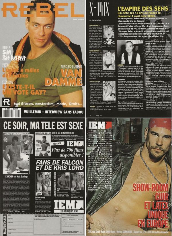 Rebel n°4 d'avril 1993. Un exemple parmi tant d'autres sur la présence publicitaire d'IEM dans la presse gay. Plus rare, une interview avec une photo de Michel…