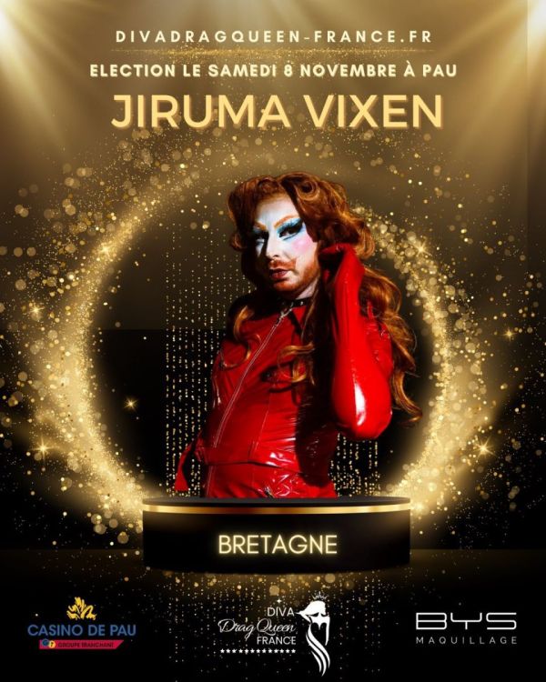 Jiruma Vixen, la Mother de Lorient. Sorcière et femme fatale à la langue aussi aiguisée que ses talons. Laissez-vous charmer par la Renarde. Elle est le vaillant mélange entre la culture populaire et le drag avec des inclinaisons vers le cosplay. On dit qu’il pleut souvent en Bretagne, mais on a toujours chaud quand elle n’est pas loin ! 🔥