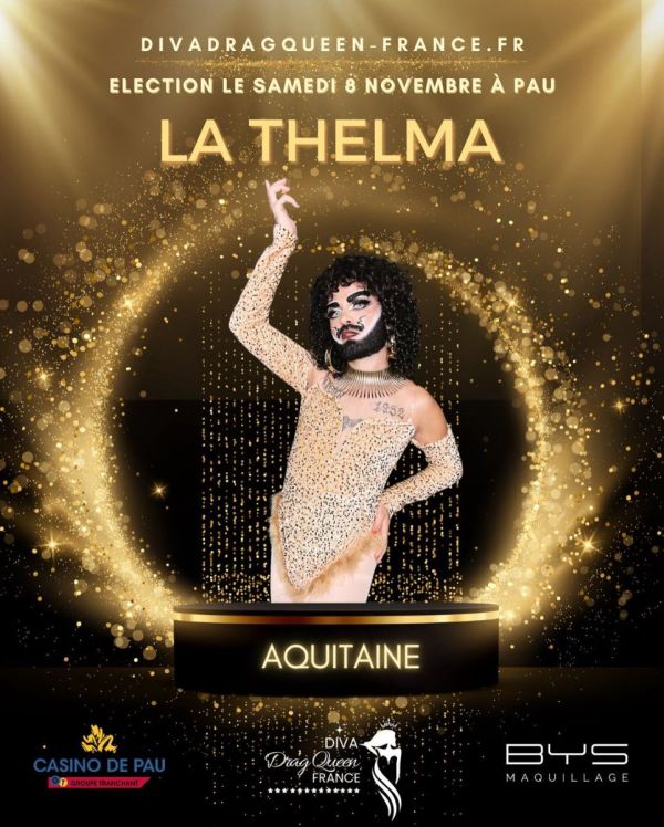 On commence les présentations avec La Thelma, la reine barbue paloise !!! Son but ? Décrocher la couronne afin de porter fièrement les valeurs du drag dans nos campagnes. Elle a hâte de faire de nouvelles rencontres lors du concours, de représenter fièrement sa région et de faire découvrir son drag au public de Diva Drag Queen France !