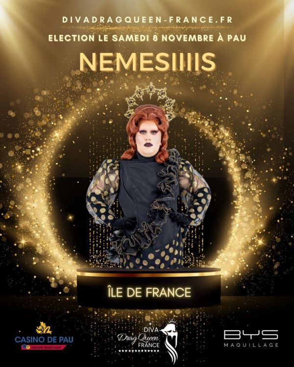 Diva Old School 4XL, Nemesiiiis est l’incarnation de la Pageant Queen sous toutes ses coutures ! Partageant le même IMC que la tour Eiffel, Nemesiiiis est fière de représenter les big girls et de prouver au monde que la beauté est universelle .✨️ Looks, Shade, Humour, Couture, Makeup ... L’opinel du Drag n’a qu’un objectif : Le Couronnement 👑
