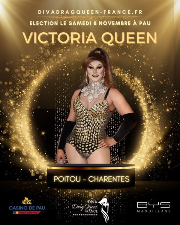 « Je m’appelle Victoria Queen, je suis miss Poitou-Charentes, âge inconnu 🤷♀️ Artiste passionnée, j’incarne l’élégance, la force et la créativité à travers l’art du drag. Ce concours est pour moi l’occasion de partager ma personnalité, mon univers et de célébrer la diversité avec éclat et authenticité. »
