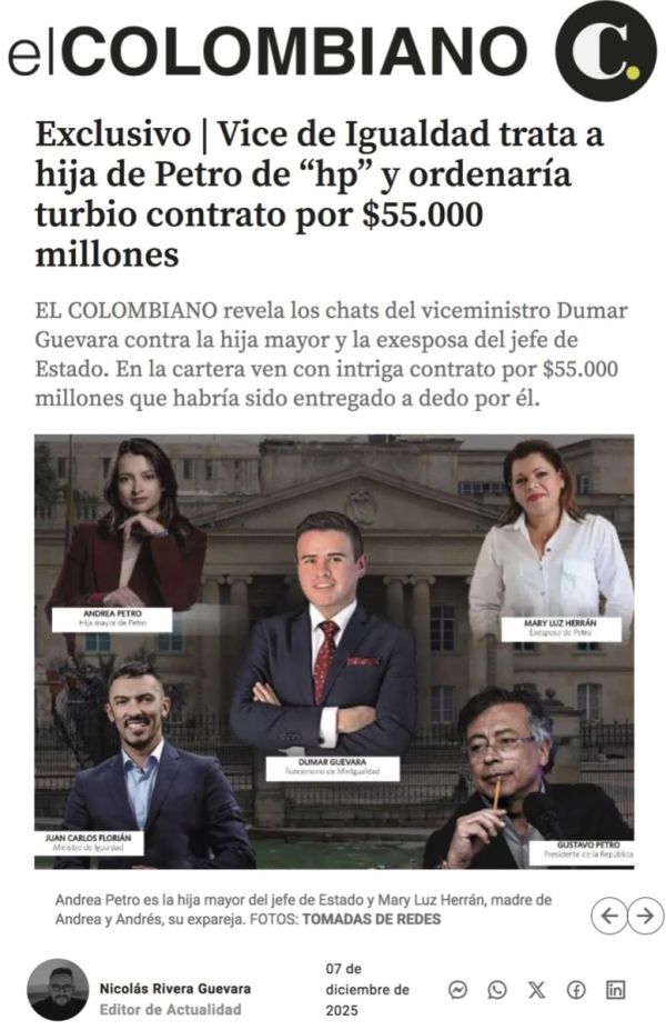 Mais une situation beaucoup plus compliquée à gérer survint quand les médias révélèrent les SMS orduriers d’un certain Dumar Guevara. Haut fonctionnaire au ministère de l’égalité et de l’équité agissant comme le vice ministre, Guevara avait insulté la fille aînée ainsi que l’ex-femme du président Gustavo Petro lors de plusieurs conversations par SMS. Les médias révélèrent parallèlement le problème éthique que posait un contrat de plus de 55 milliards de pesos (un peu plus de 2 milliards et demi d'euros !) avec un opérateur logistique pour lequel Guevara avait auparavant travaillé. Autant dire que fut relancé le débat sur la transparence et la gouvernance au sein du gouvernement colombien et que cela à bien sûr fragilisé le maintien de Juan Florián Silva à son ministère.
