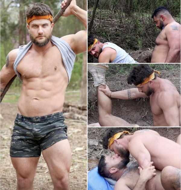 Après avoir installé le campement avec ses potes Heath Halo et Derek Kage, le très bien membré King Cuba raconte en détail sa rencontre fortuite avec Arno Antino, à poil, en pleine forêt, prêt à l’emploi…
