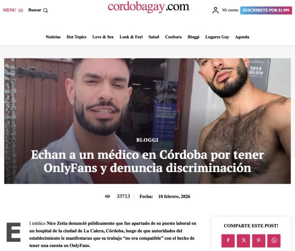 Discrimination pornophobe : L’Argentin Nico Zetta licencié d’un hôpital où il était médecin pour le seul motif qu’il a un compte OF !!!