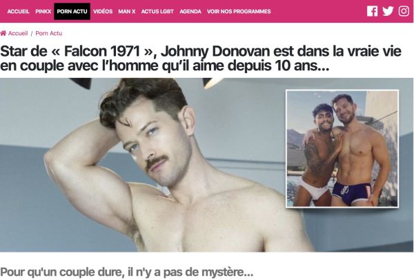 Star du porno gay US, à l’affiche de plusieurs films dernièrement vus sur PinkX comme Falcon 1971, Beat the Heat, et Addicted to Love, le top canon Johnny Donovan vit en couple depuis plusieurs années : il vit avec Ricky, un autre beau mâle avec lequel il s’était lancé dans le porno sous le pseudo de Deacon. En janvier de cette année, cette relation amoureuse avait fait l’objet d’un article…