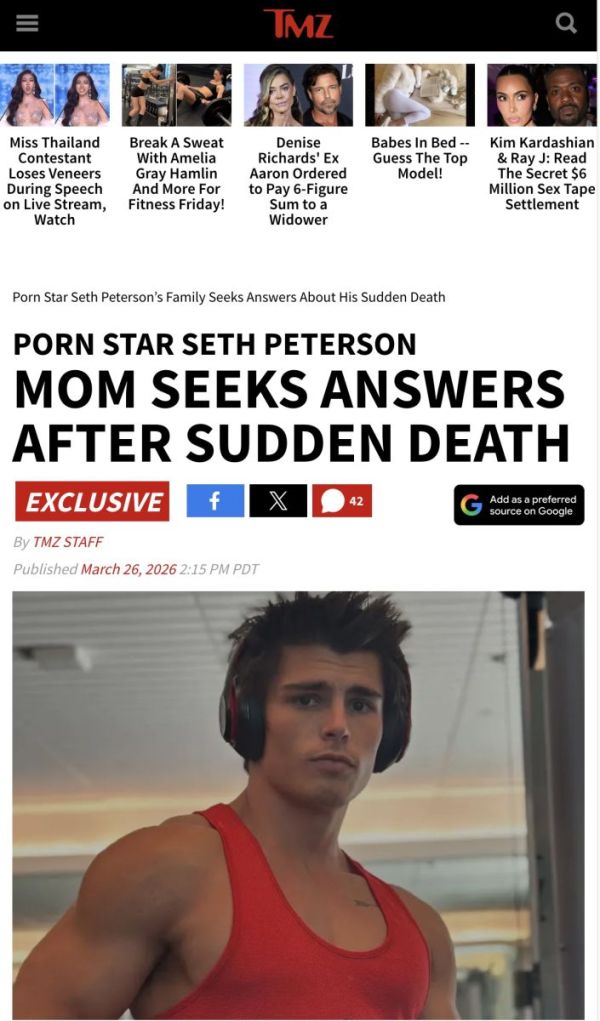 Posté le 21 mars sur le compte X de Seth Peterson, cette annonce de son fiancé Kobe Marsh (alias la porn star Cyrus Stark) n’a pas unanimement été accueillie comme une vérité. À la stupeur et la tristesse se mêlaient effectivement l’incrédulité et le doute. Ainsi un certain Matthew a pu faire ce commentaire sur MenOfPorn, l’un des premiers sites à parler de l’annonce du décès de Seth Peterson par son fiancé : « Je suis peut-être le seul à penser ça, mais il y a quelque chose de louche. D'abord, pourquoi Cyrus Stark aurait-il utilisé son vrai nom (Kobe) pour créer une cagnotte GoFundMe via le compte Twitter de Seth, au lieu d'utiliser le sien ? Vu leur relation tumultueuse, Cyrus chercherait-il à se venger de Seth ? Il existe une vidéo où Seth tabasse violemment Cyrus [?!?! - NDLR] , et on sait tous qu'il a fait la même chose à son ex, Aiden Garcia [voir ici]. Ensuite, Seth vient d'une famille aisée. Pourquoi auraient-ils besoin d'une cagnotte GoFundMe pour financer ses obsèques ? Franchement, si c'est vrai, c'est vraiment triste et ça vient s'ajouter à la liste déjà bien trop longue des acteurs porno qui meurent beaucoup trop jeunes : Blake Mitchell, maintenant Seth Peterson, avant eux Casey Tanner et Cole Claire… L'avenir nous le dira. »