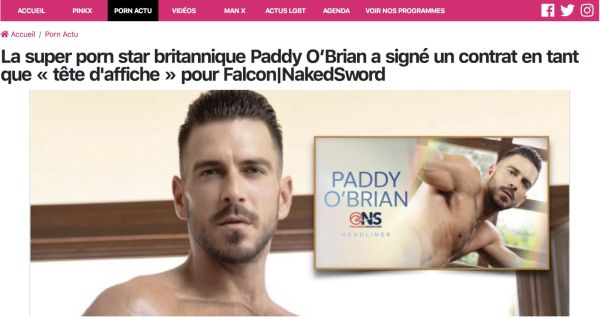 En mars de l’année dernière, le Britannique Paddy O’Brian avait signé un contrat avec Falcon|NakedSword prévoyant qu’il serait la « tête d'affiche » du groupe pour six scènes à venir. Une information qui avait donné lieu à un article où nous revenions sur sa carrière exceptionnelle.