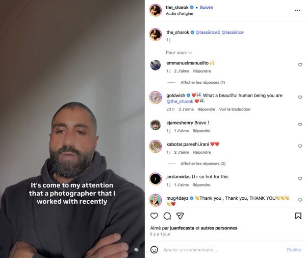 S'il vit en Californie, Sharok adore la France, en particulier Marseille et Paris où il séjourne régulièrement. C’est justement à Paris, lors d’un vernissage, qu’un incident lui a cruellement rappelé sa jeunesse à Los Angeles. Une époque où il avait eu affaire à des photographes qui abusaient de leur pouvoir. Il s’était alors tu car il n’avait ni la force ni le courage de s'opposer à eux. Mais aujourd’hui, l'homme viril et musclé de 41 ans qu'il est ne laisse plus passer les choses. Ces “prédateurs”, comme il les surnomme, le révulsent au plus au point. Il s’en explique dans une vidéo postée il y a trois jours en accusant un photographe français renommé d’avoir publié et vendu des photos de nu d’au moins quatre de ses amis et connaissances sans leur consentement, sans autorisation écrite…