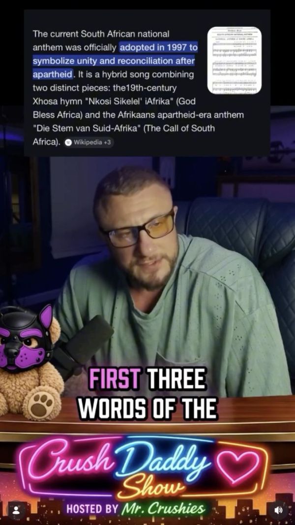 Rançon du succès ? Toujours est-il qu’en participant à Stripped Down, Crush Daddy ne bénéficie pas seulement d’une notoriété démultipliée. Il essuie aussi une critique qui se répète inlassablement. Son tatouage Nkosi Sikelel' iAfrika ne passe vraiment pas pour certains qui l’accusent d’appropriation culturelle, de racisme et d'être un nostalgique de l’apartheid. Exemples : « Qu’il aille se faire f***** lui et son tatouage + son tatoueur » « Je vois qu'il fait aussi du porno. L'idée de regarder un type avec une tête de Boer avoir des rapports sexuels ne me plaît pas. Mais bon, je prends le risque. » « Donc, comme des Karen et Ken qui défendent l’apartheid ou… ? » « Notre hymne national sur son torse. Cette p*** aurait bien eu besoin de l'apartheid et du racisme. » Très éprouvé, au bord des larmes, le Sud-Africain a posté il y a deux jours sur Instagram une vidéo…